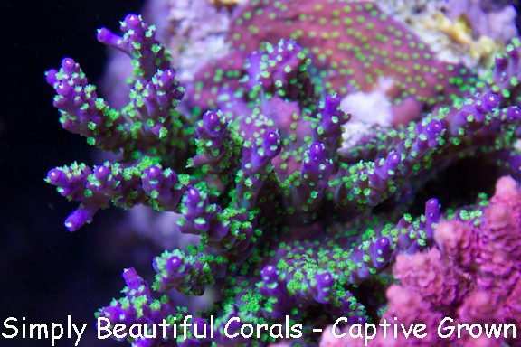 A favorite, the GARF Purple bonsai has a deep purple base with brilliant lime green polyps.