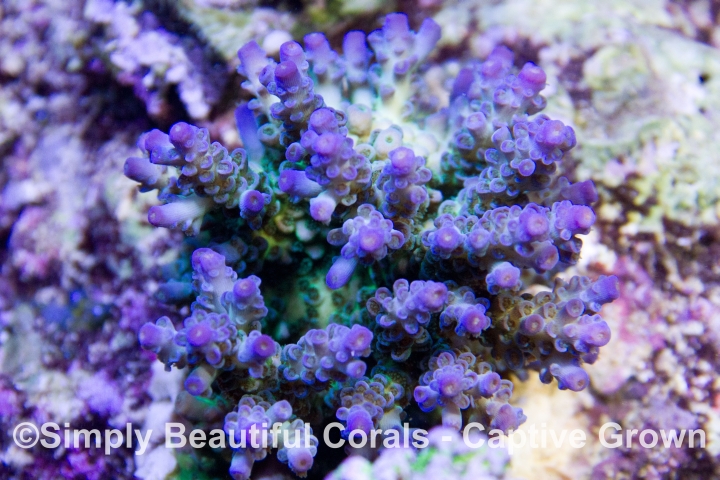 ORA Joe the Coral is a slender branching staghorn coral with a bright green base and glowing blue growth tips. It has a random growth pattern, less polyp extension and a more brilliant green base coloration.. Not to be missed in any SPS aquarium.