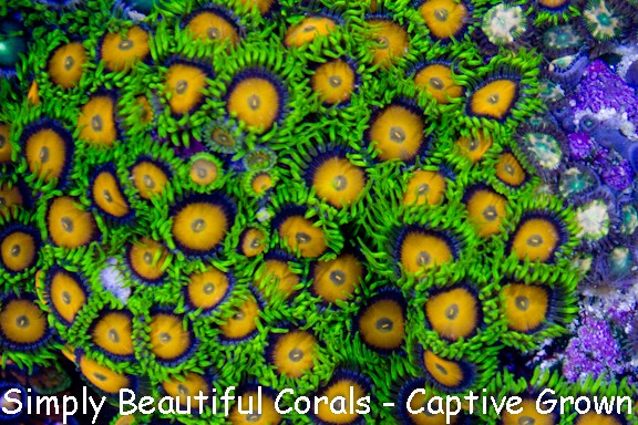 This is a must have! A true yellow zoanthid with a bright yellow skirt highlighted by an almost black border around the skirt rim.